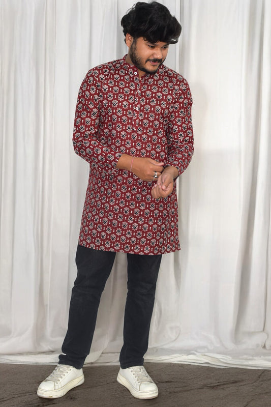 Rangrez Rust Hand Block Cotton kurta for men