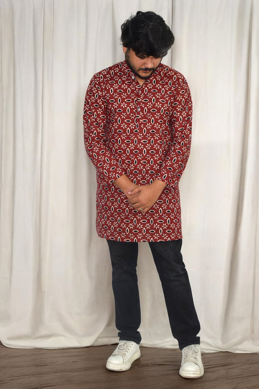 Rangrez tricona Hand Block Cotton kurta for men