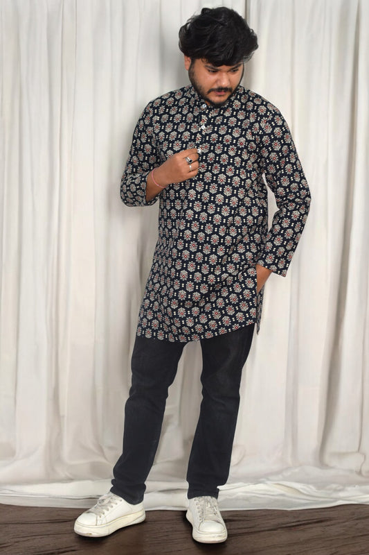 Heritage Black circle Hand Block Cotton kurta for men
