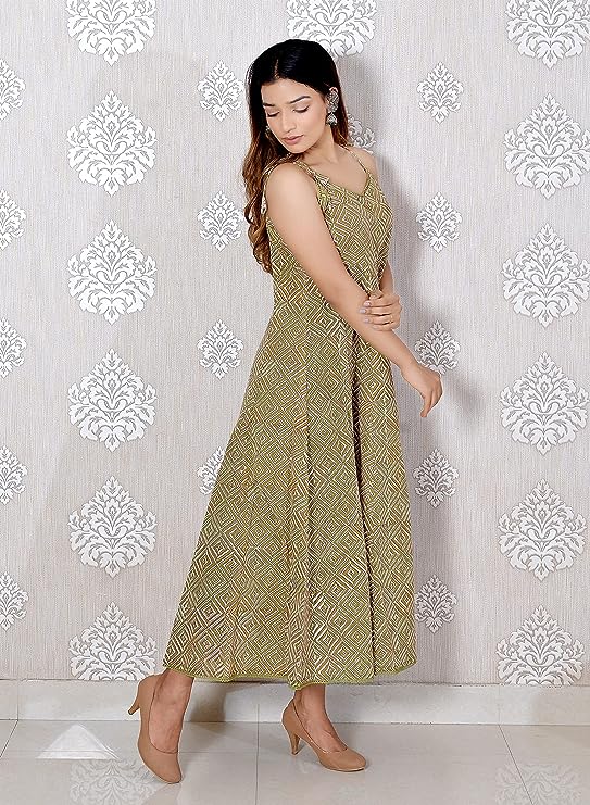 • Beautiful western-style long dress with lace work on the neck with adjustable strings on sleeves. Can be weared as dress or Kurti.