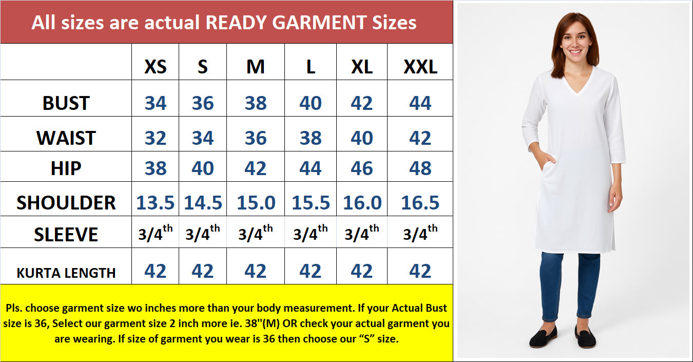 Rooted in simplicity and mindful comfort, the Shanta White Long Kurta is designed for effortless everyday elegance. Crafted from soft, breathable fabric, this long kurta features a clean V-neckline, three-quarter sleeves, and a relaxed straight silhouette that allows ease of movement and all-day comfort. The pristine white hue reflects calm, balance, and timeless style—making it ideal for yoga sessions, wellness retreats, relaxed workdays, or conscious living. Pair it with denim, trousers, or leggings for a look that feels grounded yet refined.